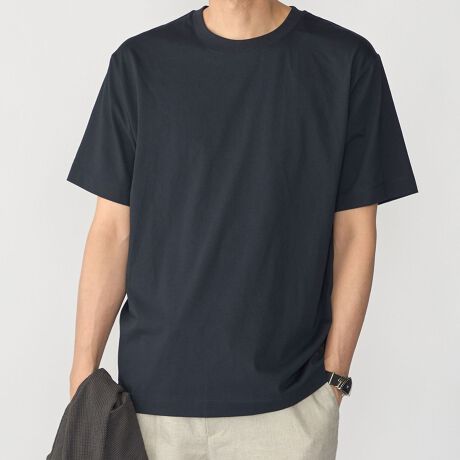 シルエット・デザイン共にシンプルなクルーネックTシャツ。