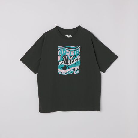 濃紺のリンガーボディにヴィンテージ感のある染み込みプリントのデザイン。