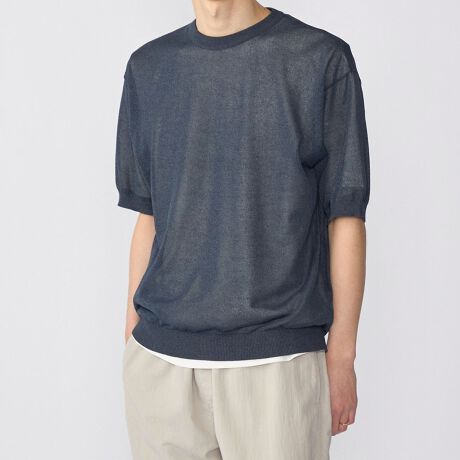 和紙素材を活かした風通りの良いややリラックスしたサイジングのニットTシャツ。