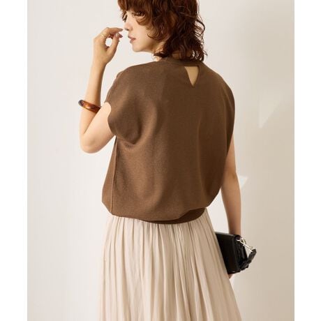 昨年大人気だったニットがWEB限定で再登場!触れるとひんやり涼しい接触冷感素材で仕立てたニットプルオーバー。ラメ糸のさりげない光沢感やなだらかなフレンチスリーブが女性らしい華やかな着こなしを演出します。バックネックのV字のカットラインもお洒落なポイント。肌離れの良いゆったりとした着心地で、夏の暑い日にも快適に着用いただけます。