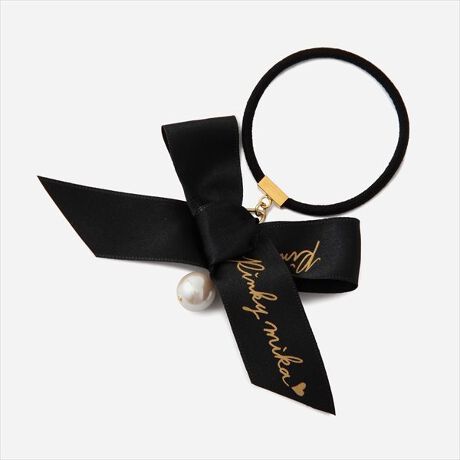 ロリィの【Pinkymika】パールとサテンリボンのシンプルヘアポニー【LoliiShop】オリジナルリボンを使用したシンプルなヘアポニー。どんなテイストにも合わせやすいです。[型番:PM-HA13-006]