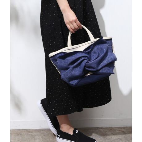 くしゅっとしたリボンデザインがかわいい雰囲気のトートバッグ。