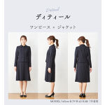 ステンカラージャケットと、膝の隠れる丈のシンプルワンピースのセットスーツです。