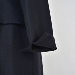 他のメーカーで買う5号サイズと比べると少し大きめだったため、ジャケットの袖やワンピースの裾はお直しに出しました。生地は想像していたより薄く、ウール100%のため埃や毛が付きやすいです。色の表記はネイビーですが、黒に見えます。