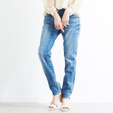 大人気のデニムブランドRED CARDと、Rouge vif la cleのコラボが実現。ストレッチ性が高く馴染みやすいデニムは、デイリーに履きこなすのにおすすめの一本。すっきりしたシルエットに仕上がっているので、ブラウスやニットなどきれいめなトップスとのコーディネートにもぴったり。ワードローブの定番ボトムに是非加えたいアイテムです。