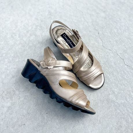 アッパーのベルトデザインはホールド感があり、サイドのお花部分もポイント◎。