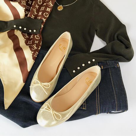 程良い丸みのラウンドトゥが大人可愛い雰囲気のFin(フィン)のラウンドトゥバレエシューズ。