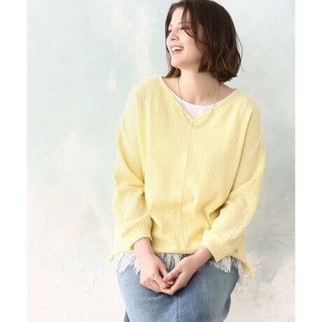 ストレッチ糸を裏側にシャーリングしたリップルジャージー風の生地を使用しています。