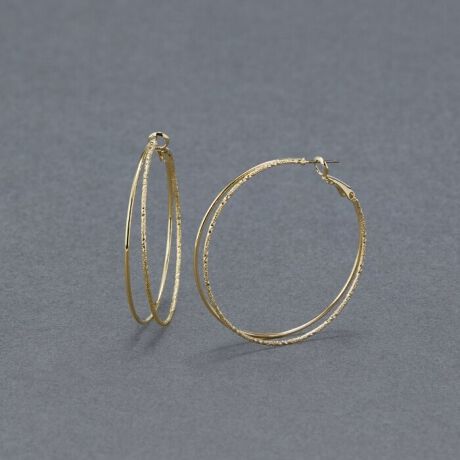 【テクスチャーを施した金線が煌めくダブルラインのフープピアス】