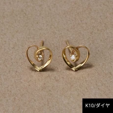 【K10】ダイヤモンドハートピアス