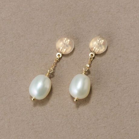 丸みあるフォルムが上品な淡水パールが耳下で揺れるピアスキャッチ。