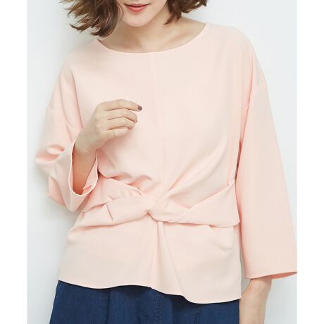【ツイストデザインでトレンドのペプラムフォルムを新鮮に。綺麗め素材でお呼ばれシーンにも対応します】
