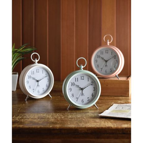 [型番:2760264]フレームに淡いパステルカラーをあしらった、フレンチレトロなデザイン。クラシカルな針がレトロな雰囲気を際立たせます。