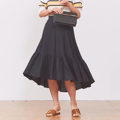 ヴィンテージライクなソフト加工を施したリネンのスカート。製品染めでやわらかい風合いを出しました。