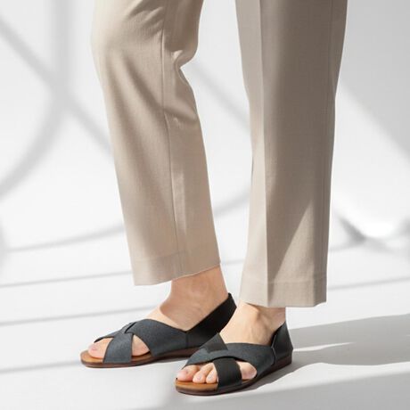 サンダルの涼しげな抜け感と、フラットシューズの歩きやすさを両立した、