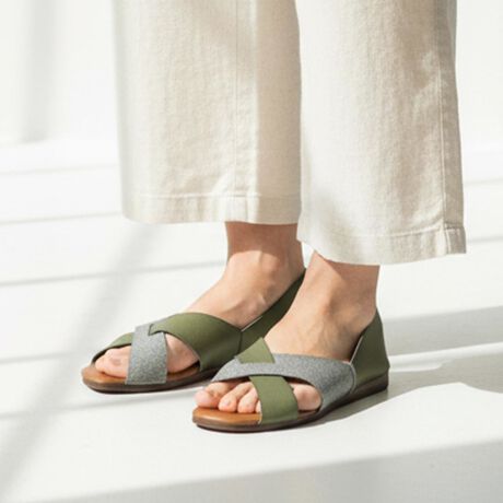 サンダルの涼しげな抜け感と、フラットシューズの歩きやすさを両立した、