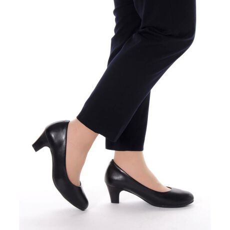 【ふかふかクッション/屈曲/抗菌】働く女性を応援☆ 足に優しい多機能を搭載し、履き心地と快適性を追求したプレーンパンプス。負担のかかりやすい土踏まずに厚みを持たせた高反発素材のクッションインソールを搭載。足裏にふんわり心地よくフィットすると共に、高い反発性が生む地面を蹴りだす力で、歩行をアシスト♪ 中敷つま先部には抗菌加工素材を使用し、気になるニオイを抑制してくれます。靴底には歩行に合わせてしっかりと曲がる、屈曲性の高い素材を採用。踵には脱げを防止するぷっくりパッドを搭載するなど、歩きやすさ・疲れにくさにとことんこだわりました。緩やかなラウンドトゥと高すぎないミドルヒールで、安定感とキレイさを両立♪ 甲高幅広の方にも履いて頂けるゆったり3E設計で、長時間ご使用の際も締め付け感が少なく、気持ち良くお履き頂けます。お仕事履きから冠婚葬祭まで、あらゆるシーンに対応してくれる汎用性の高い一足。