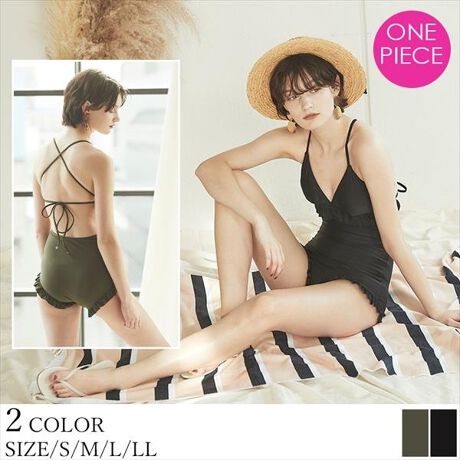 フリルデザインが施された大人可愛いワンピース水着。