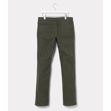 10号帆布にパラフィン加工をプラス。バッグにも使用される生地で、弱撥水効果があります。デニムやレザーなどと同様、履けば履くほどアタリが出て色も変わり、自分仕様に育てることで愛着が湧いてくる1本。お手入れはできるだけ洗わないのが正解。楽さではなく、かっこよさにとことんこだわった1本です。