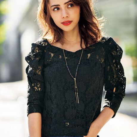 トレンドのパワショルレースブラウス。