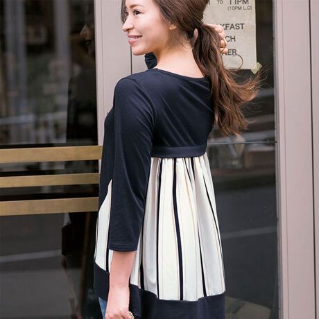 サイドから後ろにかけて大人可愛いプリント生地で切替えた、どこから見てもおしゃれなプルオーバー。