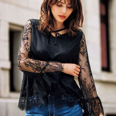 <ジーラ バイ リュリュ(ファッション)のフレアー袖パネル柄レースブラウス>