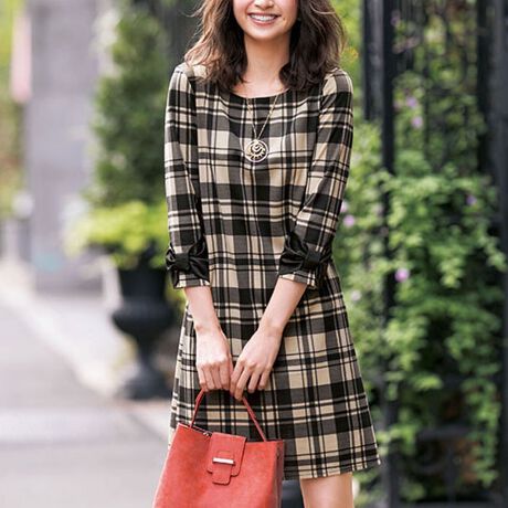 レトロフェミニンなプリントのワンピースは、ストンと着られるシルエットで大人モード。
