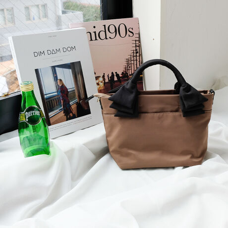 リボンのモチーフがさりげなく上品なミニナイロンバッグです♪