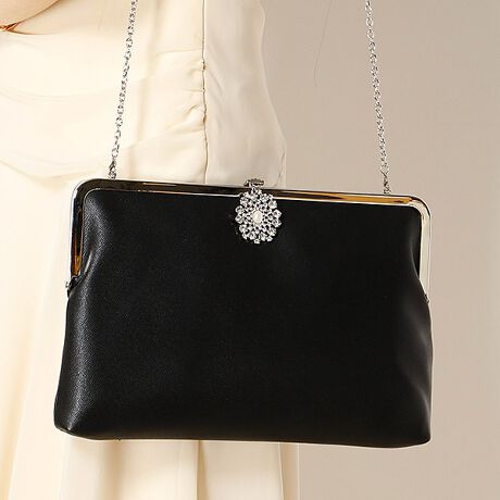 ドリードールのビジューバックル 箔加工レザークラッチバッグ