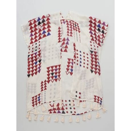 軽く手触りの良い素材で夏の羽織として重宝する、キッズのロングカーディガン。 華やかな柄とコットンフリンジのアクセントで、ボヘミアンにもカジュアルにもきまわせる万能アイテムです。