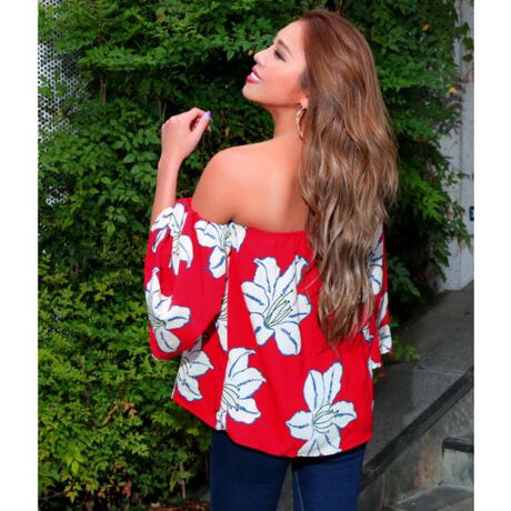 大きなフラワーモチーフが可愛いオフショルダートップス