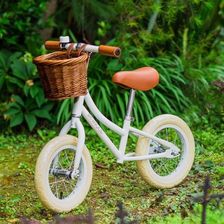 バランスバイクは、素朴かつ丈夫で高品質な素材を使用した設計で、フレームはスチール製、ハンドルバーはアルミ製です。サドルとハンドルグリップには、あらゆる天候に適した、簡単に拭き取ることができる品質の良いフェイクレザーを使用しています。着脱可能な籐製のバスケットは、子どもたちの一日の冒険に不可欠なグッズを入れるのにぴったり。