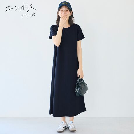 大人気エンボスマキシ丈ワンピース