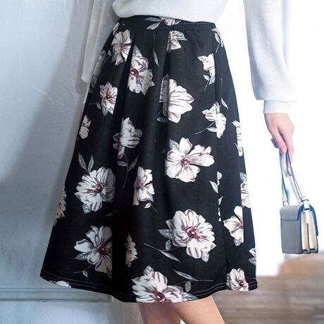 程よいフレアーシルエット&タックデザインのミディ丈スカートなら、きれいめ秋スタイルが即完成♪