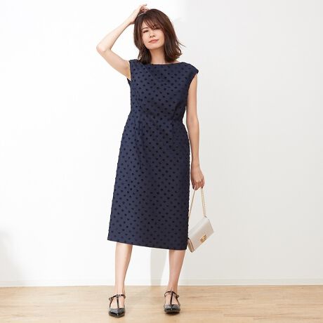 ドット柄のジャガード素材で仕上げ、大人の女性も品良く着られるようにしました。