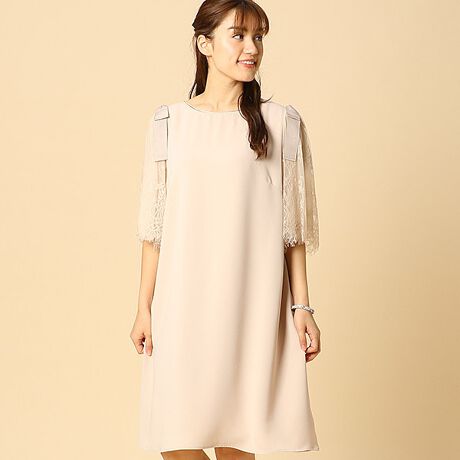 袖を繊細なレース地で作り上げたワンピースです。