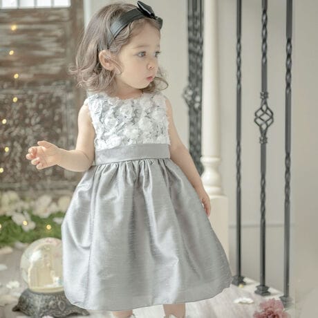 前身頃にたっぷりとバラモチーフがあしらわれたベビードレス。