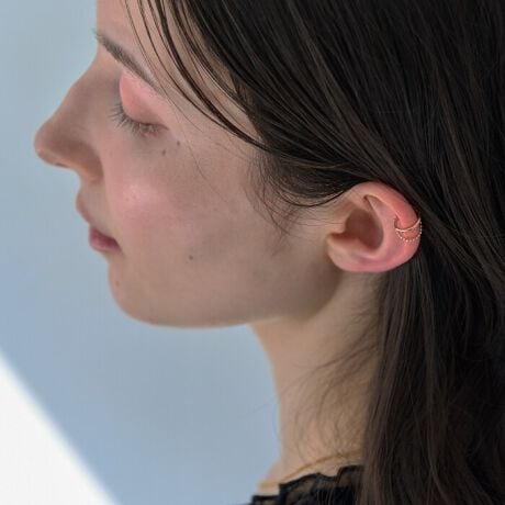 耳元のレイヤードスタイルにおすすめの片耳イヤカフさり気なくおしゃれ度をアップさせてくれるベーシックデザイン。