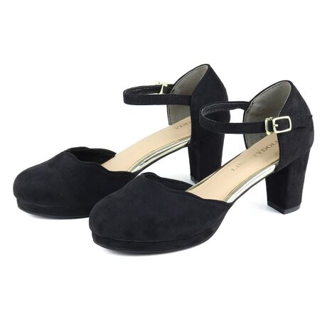 スカラップ/カジュアル/シンプル/ヒール/おしゃれ/可愛い/ストラップ/美脚/脚長/太ヒール/安定/