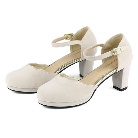 スカラップ/カジュアル/シンプル/ヒール/おしゃれ/可愛い/ストラップ/美脚/脚長/太ヒール/安定/