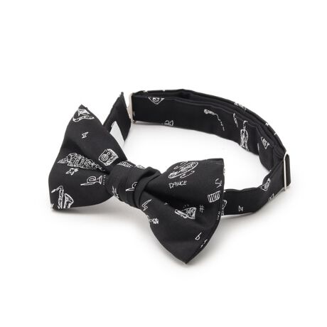 シルクジャカードの蝶ネクタイ。男性の趣味をモチーフにデザインされたポップな柄は結婚式の2次会〜カジュアルユースまでお使いいただけるデザインとなっております。