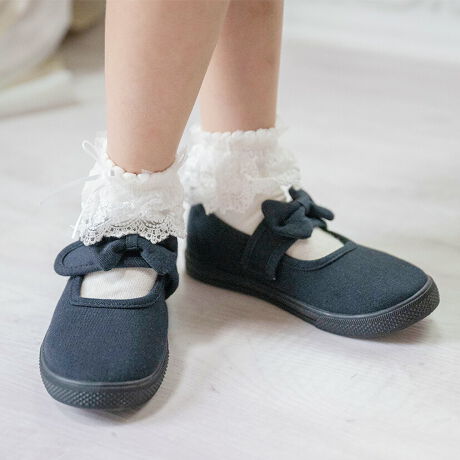 女の子の足元をマルチに彩るキャンバスリボンシューズ