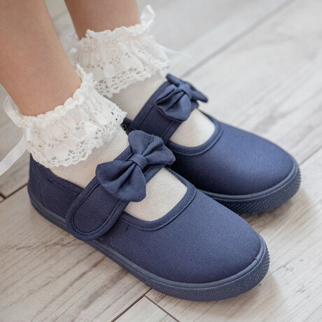 女の子の足元をマルチに彩るキャンバスリボンシューズ