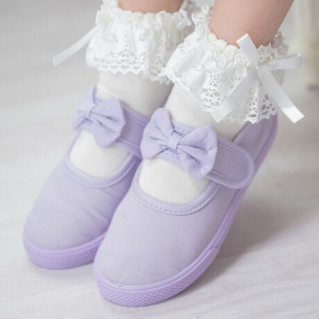 女の子の足元をマルチに彩るキャンバスリボンシューズ