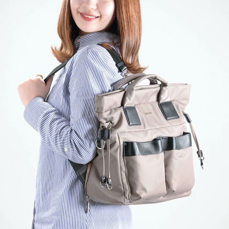 ハンドバッグ、ショルダーバッグ、リュックと3通りで持てるのが最大のポイント。