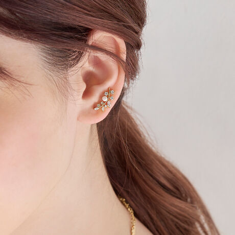 ピアスホールに通して上に持ち上げ、モチーフを耳たぶに沿うように着用したり