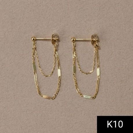 【2種類の華奢なチェーンが輝くK10チェーンピアス】