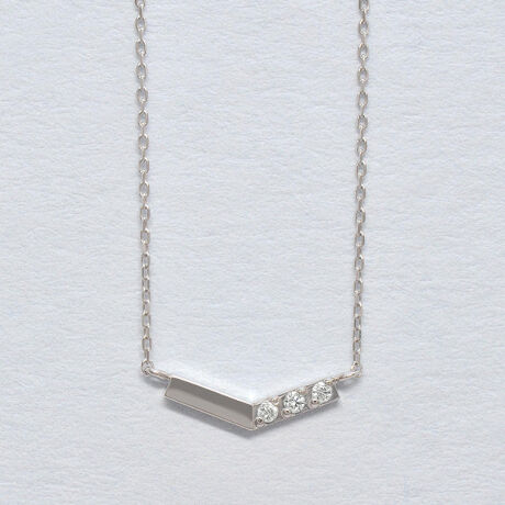 V字型がクールな印象のネックレスです。3石のダイヤモンドがキラキラと輝きます。