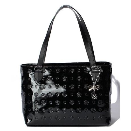 パールエナメルにカメリアのモノグラム柄をエンボスした、クラシックでエレガントなライン。軽量なので普段使いやちょっとしたお出掛けにも活躍。こちらは持ち手の色をボディと合わせ、平手にし肩掛けしやすい仕様です。エナメルのきれいな発色もポイントです。[型番:184501]【 CLATHAS / クレイサス】