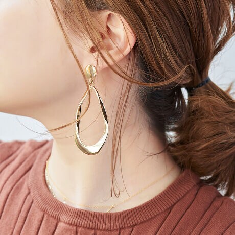 【抜け感のあるドロップフープが揺れて目を惹くボリュームピアス】